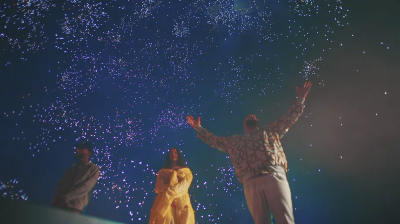 - 鮮やかなビジュアル: カラフルで大胆なファッションに身を包んだRihanna、男らしいジャケット姿のKhaled、そしてトレードマークの帽子を被ったTiller。